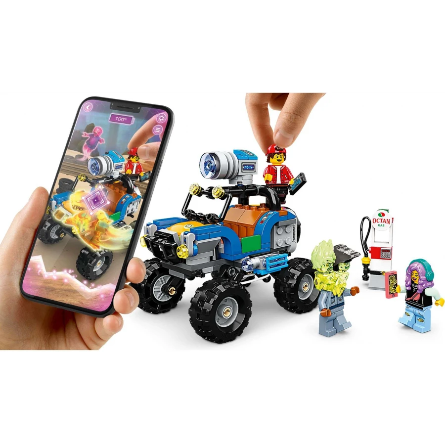 • Když se na tuto plážovou buginu podíváte přes chytré zařízení s bezplatnou LEGO aplikací pro rozšířenou realitu, promění se. Poté se děti pustí do řešení záhad, vydají se na lov duchů a utkají se se strašidelným bossem Truckerem Dalem v prokletém digitálním světě.