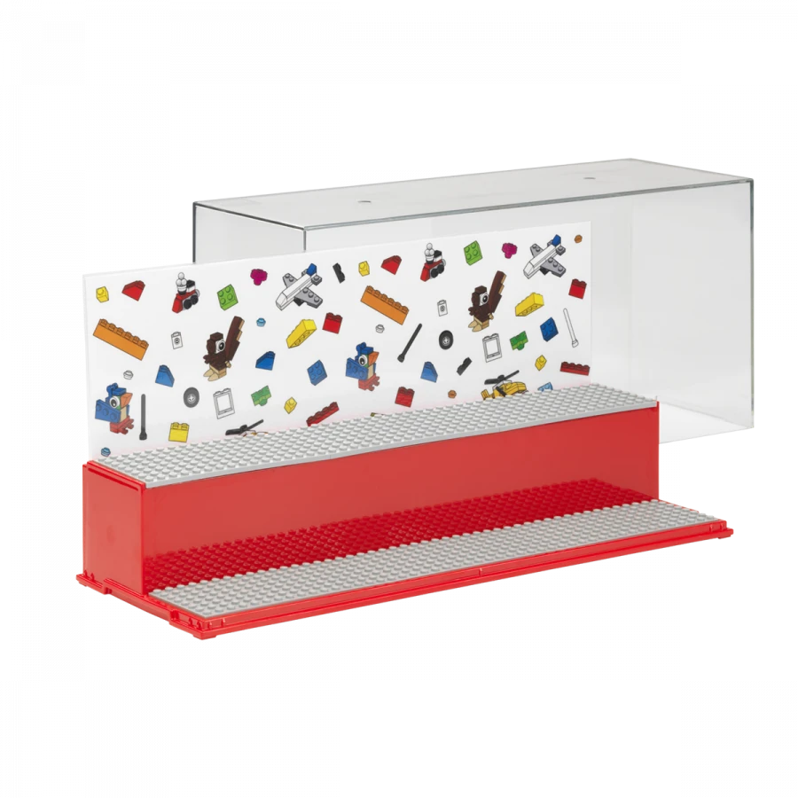 Bavte se a předveďte své výtvory LEGO s tímto novým dvouúrovňovým hracím a zobrazovacím boxem. Vitrína je dodávána s 6 původními šedými základními deskami LEGO a kulisou s LEGO Iconic pozadím. Průhledný kryt chrání LEGO výtvory před prachem.