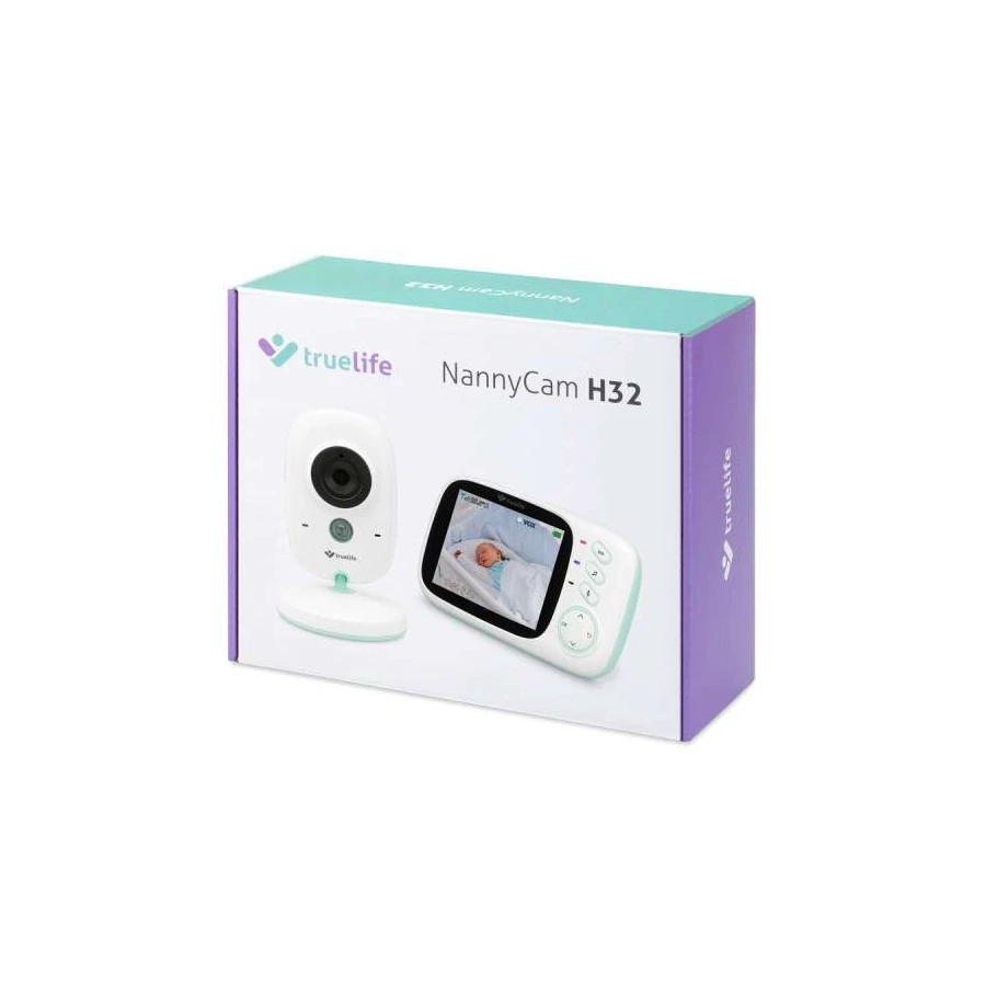 TrueLife NannyCam H32 je digitální video chůvička s přehledným barevným 3,2 palcovým LCD displejem, pokojovým teploměrem, budíkem, automatickým nočním módem včetně VOX režimu a vysoce kvalitním přenosem zvuku i obrazu s dosahem až 300 metrů.