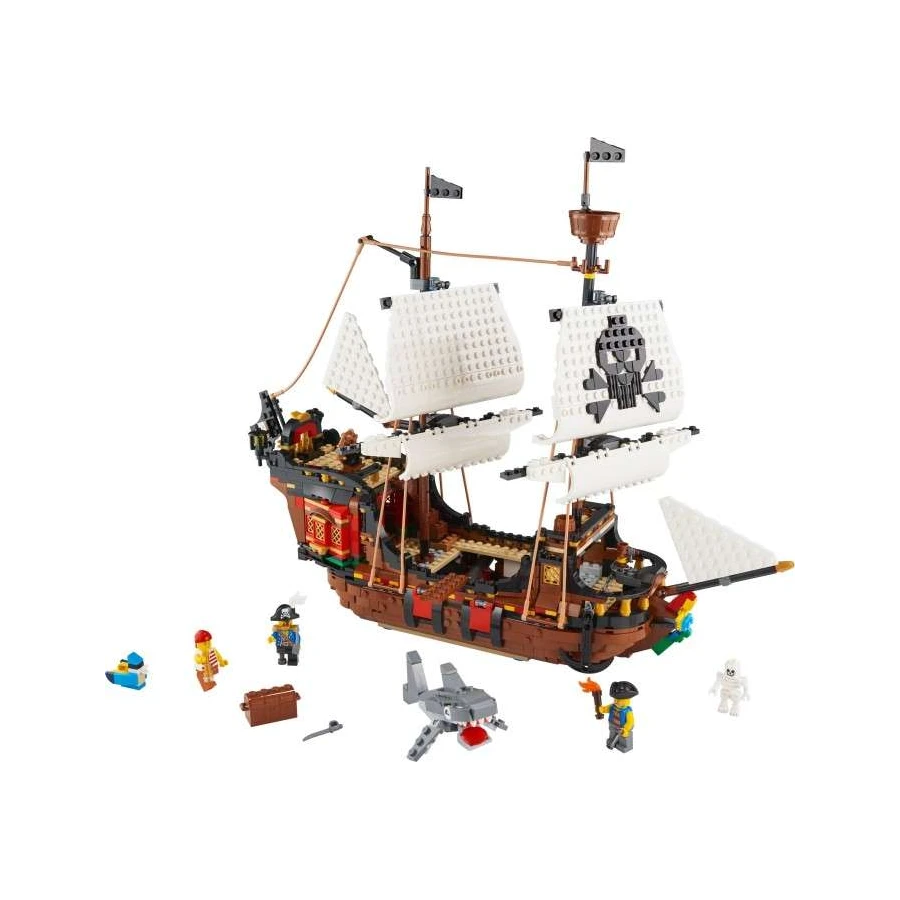 • Sada LEGO Creator 3 v 1 (31109) nabízí 3 stavitelské možnosti: pirátskou loď, pirátskou krčmu nebo ostrov lebek. S nimi si děti užijí spoustu legrace, ať už si hrají samotné, nebo s kamarády či rodinou. V sadě také najdete 3 minifigurky pro ještě více herních možností.