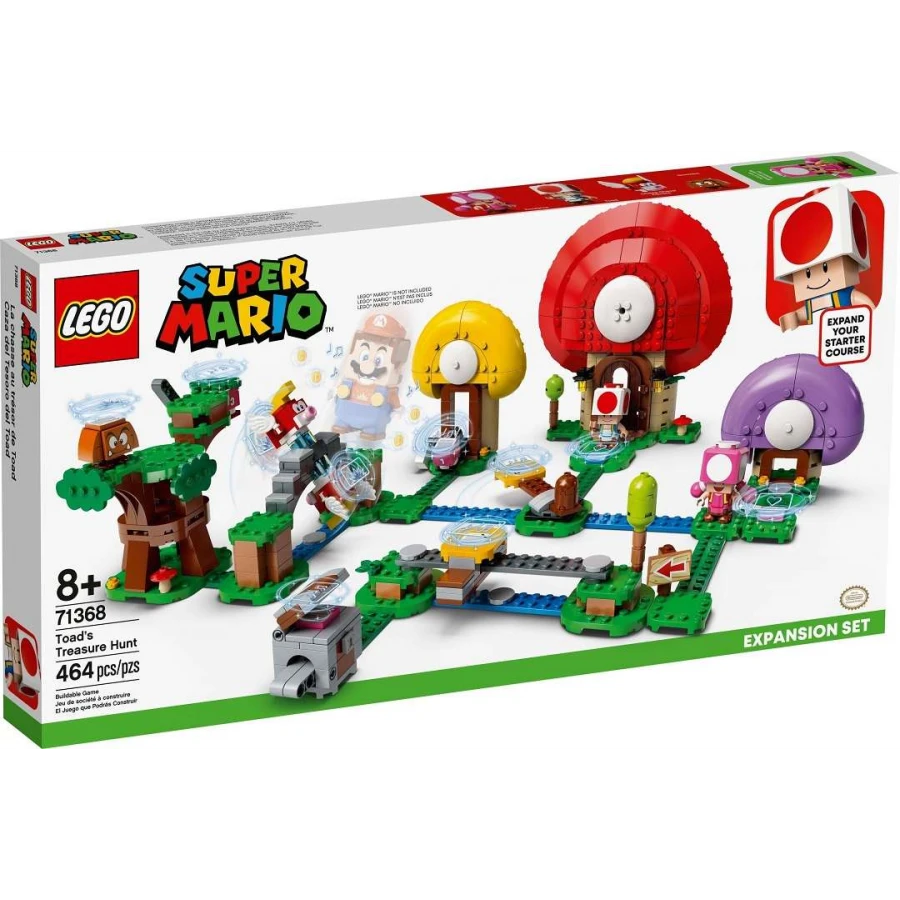 • Rozšiřující set Toadův lov pokladů (71368) dětem umožní obohatit startovací stavebnici LEGO® Super Mario™ Dobrodružství s Mariem o oblíbené postavičky, akční kostky a nové zábavné výzvy.