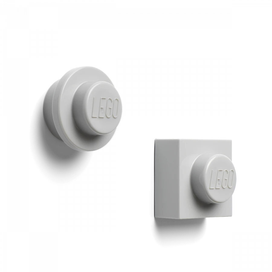Dva šedé magnetky v podobě LEGO dekorativních kostiček jsou určeny pro fanoušky této
