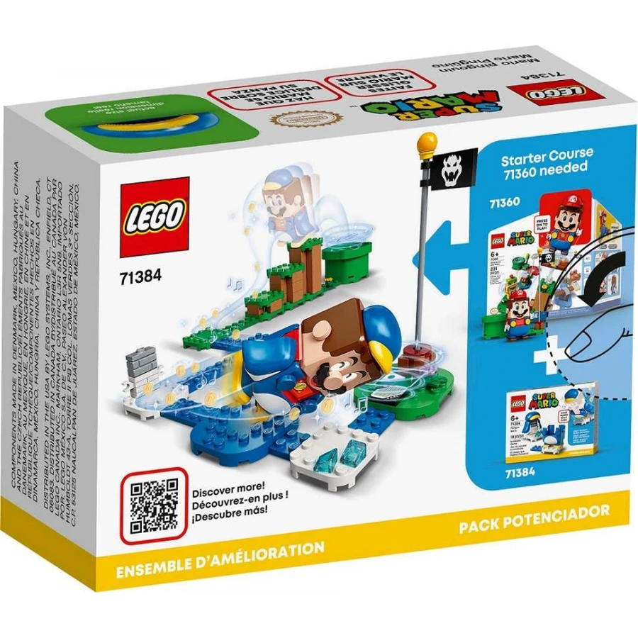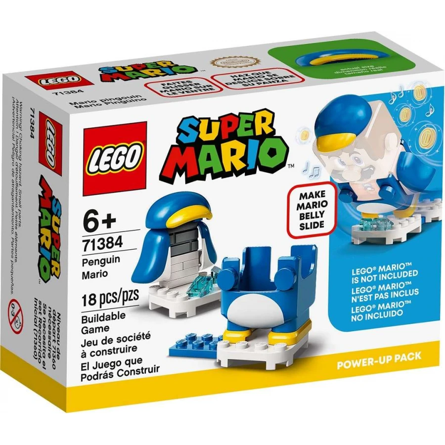Fanoušci řady LEGO® Super Mario™ mohou svůj herní zážitek učinit ještě akčnějším se sadou Tučňák Mario – obleček (71384). Obsahuje interaktivní obleček pro LEGO® Maria (figurka není součástí balení), který hráčům umožňuje posbírat více digitálních mincí tím, že se Mario bude jezdit po břiše jako tučňák. Stavebnice představuje ideální dárek pro děti, které chtějí být in a které již mají sadu Dobrodružství s Mariem – startovací set (71360) obsahující LEGO figurku Maria. Stavění a hraní Návod na sestavení této LEGO sady najdete v krabici a v bezplatné aplikaci LEGO Super Mario. Aplikace slouží jako bezpečná platforma, kde děti mohou sdílet nápady a čerpat inspiraci pro kreativní stavění a hraní. Akce se Super Mariem v reálném světě Sběratelské sety od LEGO Super Mario přenášejí kultovní postavu firmy Nintendo® do skutečného světa. Startovací set, rozšiřující sety a oblečky umožňují fanouškům upravovat si vlastní úrovně a soupeřit s přáteli či příbuznými, případně si s nimi hrát jen tak.