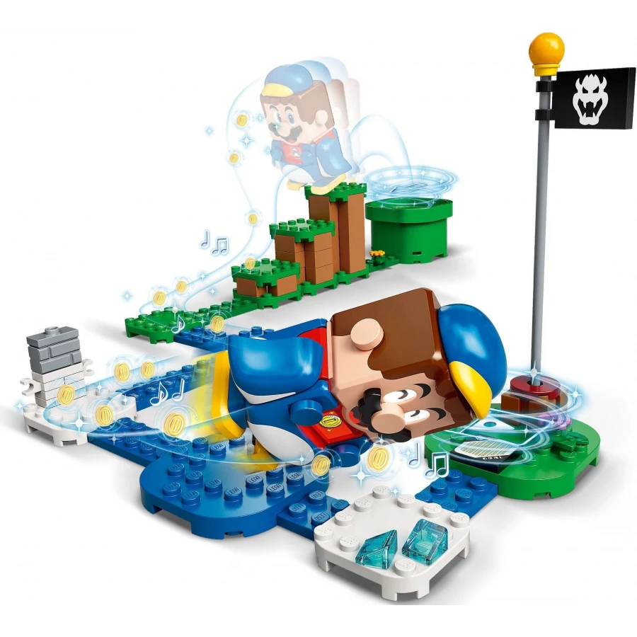 • Když má LEGO® Mario tento obleček na sobě, může klouzat po břiše jako tučňák a získat tak extra porci digitálních mincí.