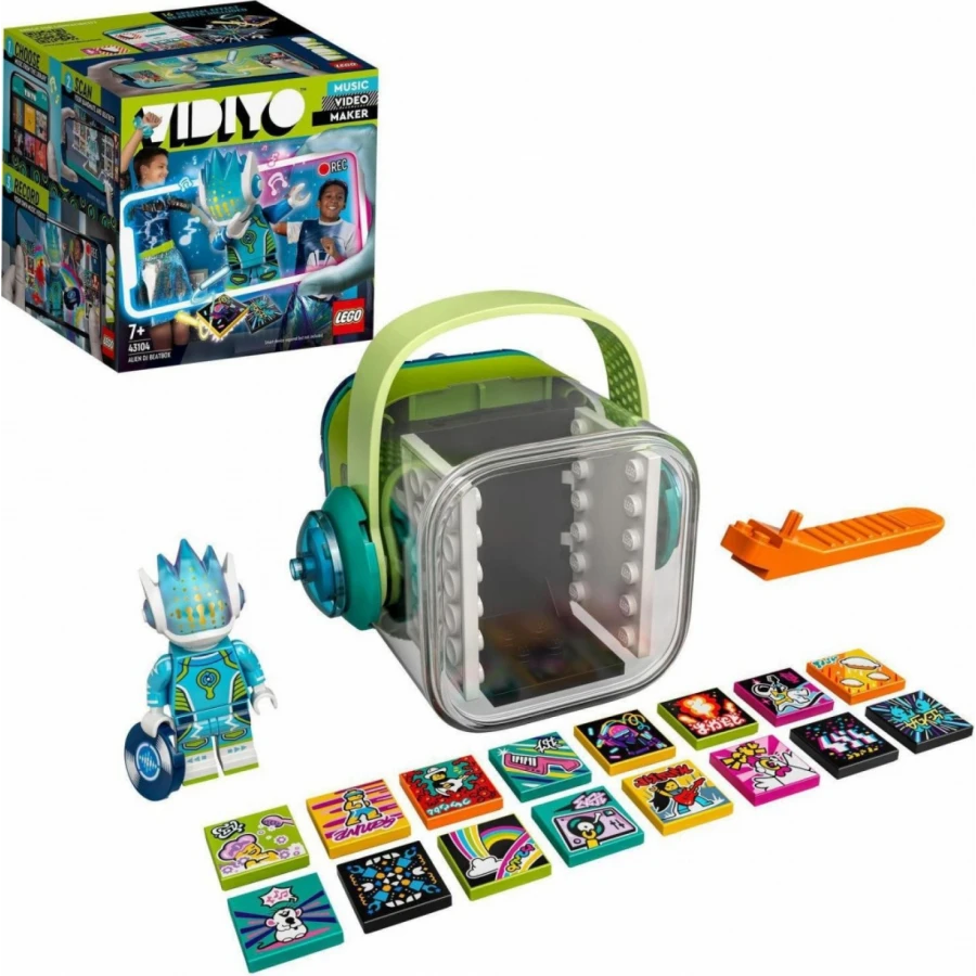 Vstupte do světa videoklipů a hudebních hvězd. Sada LEGO® VIDIYO™ Alien DJ BeatBox (43104) přináší vzrušující herní zážitky. Stáhněte si aplikaci, naskenujte minifigurku mimozemšťana a předveďte na pódiu parádní DJskou show. Díky BeatBitům získáte přístup k řadě speciálních efektů, výzev a spoustě dalšího obsahu, které mohou děti zakomponovat do vlastních videoklipů. Ty pak můžou sdílet s dalšími tvůrci v rámci bezpečné online platformy. Přenosná zábava na cesty Děti si mohou BeatBox ozdobit pomocí LEGO dílků. Podle předlohy si můžou vytvořit designy s DJským pultem, létajícím talířem nebo raketou – nebo si vymyslet vlastní. Do BeatBoxu se pohodlně vejdou BeatBity i minifigurka, takže se skvěle hodí i na hraní na cestách. Vytvářejte hudební zážitky Sady LEGO VIDIYO přináší nový herní zážitek s vlastní sociální platformou – umožňují dětem stát se režiséry, producenty a hvězdami vlastních videoklipů. Sledujte, jak děti rozvíjejí svou kreativitu při vytváření videí, která kombinují nejrůznější hudební doprovody, zábavné postavy, taneční pohyby a parádní speciální efekty.
