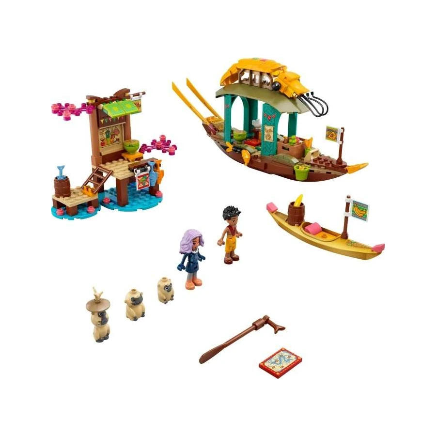 Stavebnice Boun a loď (43185) od LEGO® ǀ Disney potěší všechny fanoušky filmového trháku Raya a drak. Tato skvělá sada obsahuje velkou loď a dva menší modely, které poslouží jako inspirace ke hraní. Součástí je tištěný návod na stavění a k dispozici jsou také digitální pokyny Instructions PLUS. S pomocí aplikace s LEGO návody se děti v průběhu procesu stavění stanou skutečnými mistry staviteli... to je přece boží!Tajemství úspěchu se ukrývá v detailechSada obsahuje propracovaný model zdobené lodi s barevnou plošinou, pádlem a padacími dveřmi. Dále nechybí přístaviště s malým trhem a spousta doplňků.Skvělý a jedinečný dárekTato sada se dvěma minipanenkami – Sisu a Bounem – čeká na to, až ožije v rukou dětské představivosti. Představuje skvělý dárek pro děti, které mají rády nové trendy, a podporuje kreativní dovednosti a hraní rolí při přehrávání filmových scén a vymýšlení vlastních příběhů.