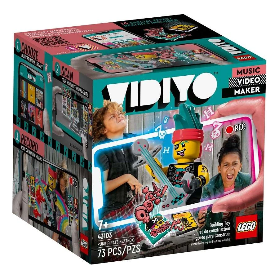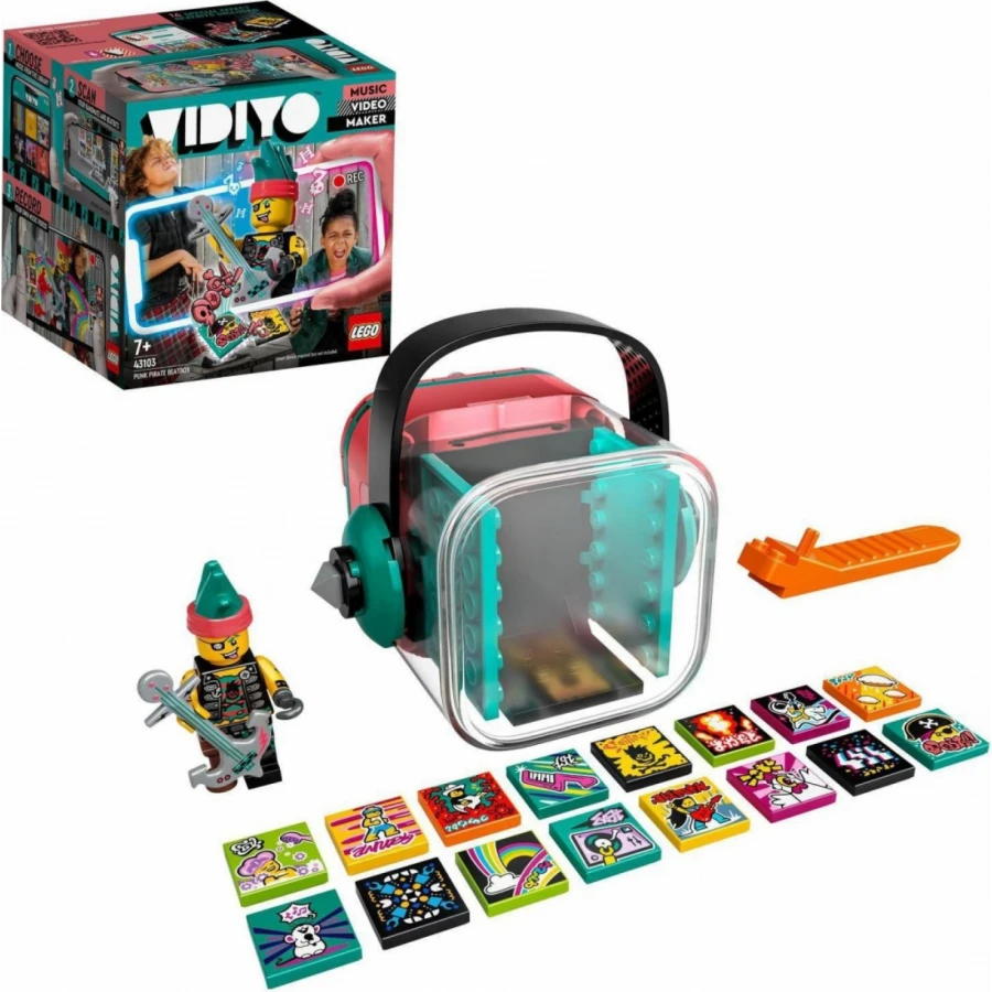 Vstupte do světa videoklipů a hudebních hvězd. Sada LEGO® VIDIYO™ Punk Pirate BeatBox (43103) přináší vzrušující herní zážitky. Stáhněte si aplikaci, naskenujte minifigurku piráta a předveďte na pódiu parádní punkovou show. Díky BeatBitům získáte přístup k řadě speciálních efektů, výzev a spoustě dalšího obsahu, které mohou děti zakomponovat do vlastních videoklipů. Ty pak můžou sdílet s dalšími tvůrci v rámci bezpečné online platformy. Přenosná zábava na cesty Děti si mohou BeatBox ozdobit pomocí LEGO dílků. Podle předlohy si můžou vytvořit designy s kotvou, truhlou s pokladem nebo pirátskou lodí – nebo si vymyslet vlastní. Do BeatBoxu se pohodlně vejdou BeatBity i minifigurka, takže se skvěle hodí i na hraní na cestách. Vytvářejte hudební zážitky Sady LEGO VIDIYO přináší nový herní zážitek s vlastní sociální platformou – umožňují dětem stát se režiséry, producenty a hvězdami vlastních videoklipů. Sledujte, jak děti rozvíjejí svou kreativitu při vytváření videí, která kombinují nejrůznější hudební doprovody, zábavné postavy, taneční pohyby a skvělé speciální efekty.