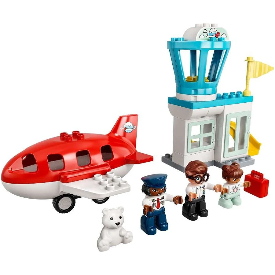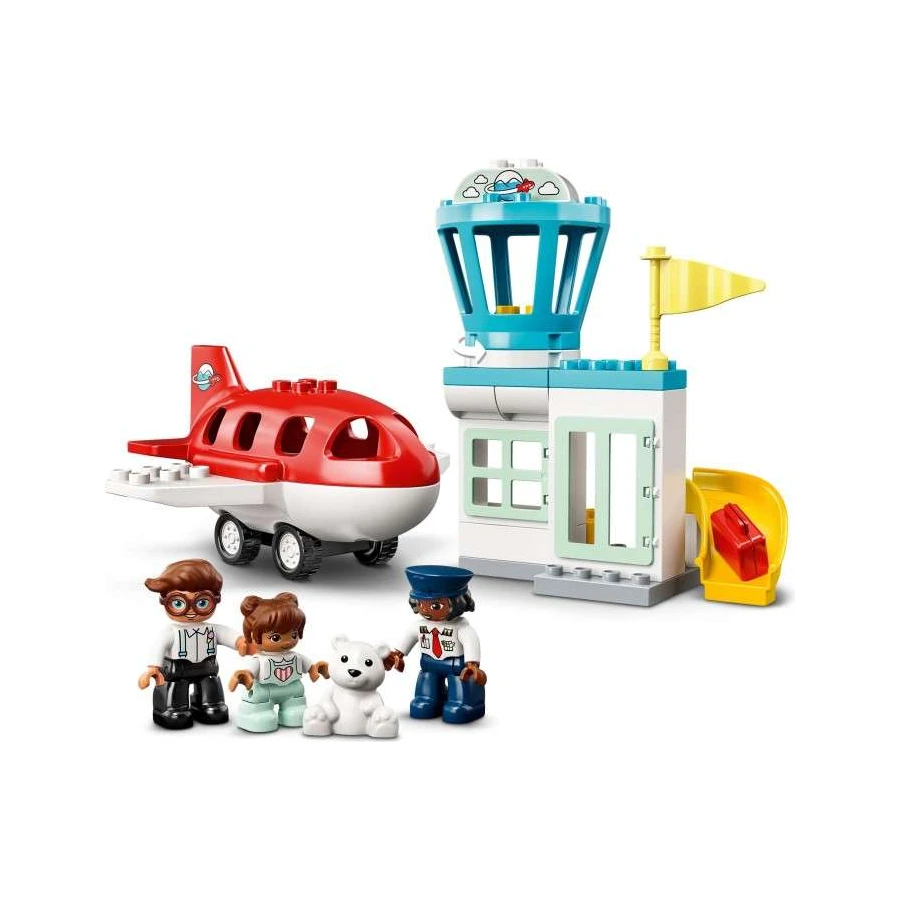 • Obsahuje 3 DUPLO® figurky – tatínka, holčičku a pilotku –, letadlo s odnímatelnou střechou a otočnou letištní věž s pásem na zavazadla.