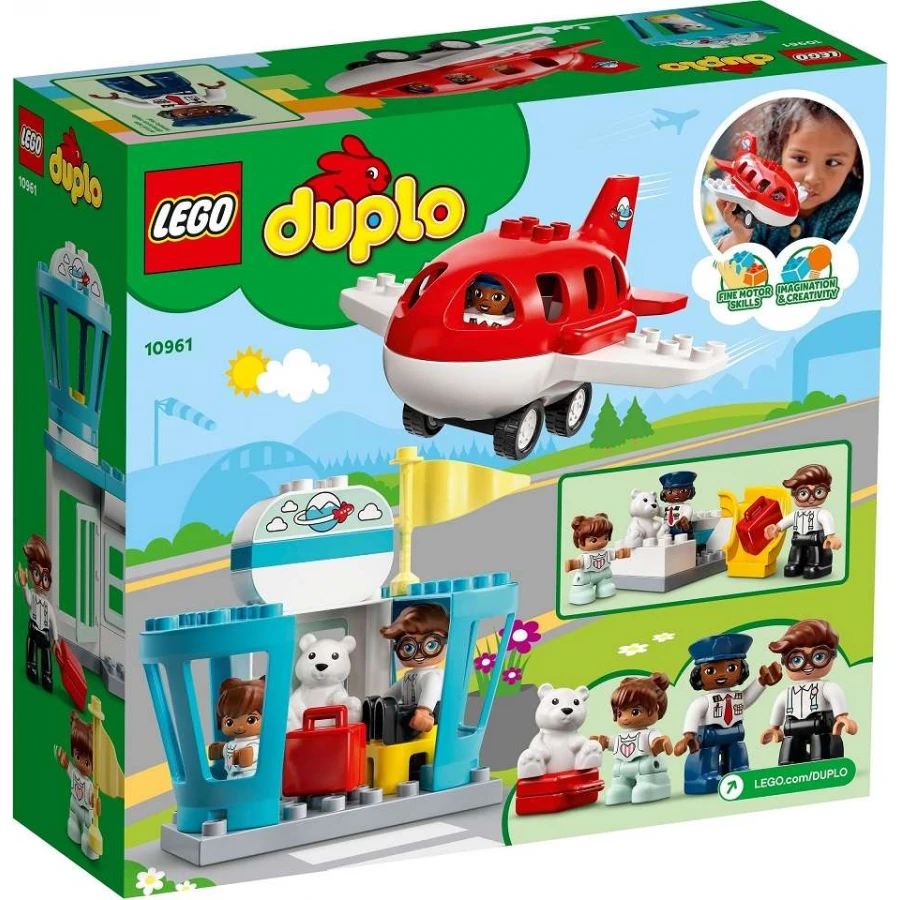 • Prožívejte díky LEGO® DUPLO® stavebnici Letadlo a letiště (10961) společná cestovatelská dobrodružství a vezměte dětskou představivost na výlet do vzdálených končin.