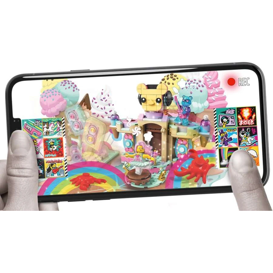 Se stavebnicí Candy Castle Stage (43111) od LEGO® VIDIYO™ se každý může stát režisérem a hvězdou vlastních hudebních videí. Vdechněte modelu a minifigurkám život pomocí aplikace na vytváření videí a podívejte se, jak si 2 postavičky povedou na pódiu. Otáčejte hlavami, reproduktory a světly na fyzickém modelu, aby se ve vašem videu vystřídaly různé scény. Sdílejte video na bezpečné sociální platformě. Pak si prohlédněte parádní zákulisí!