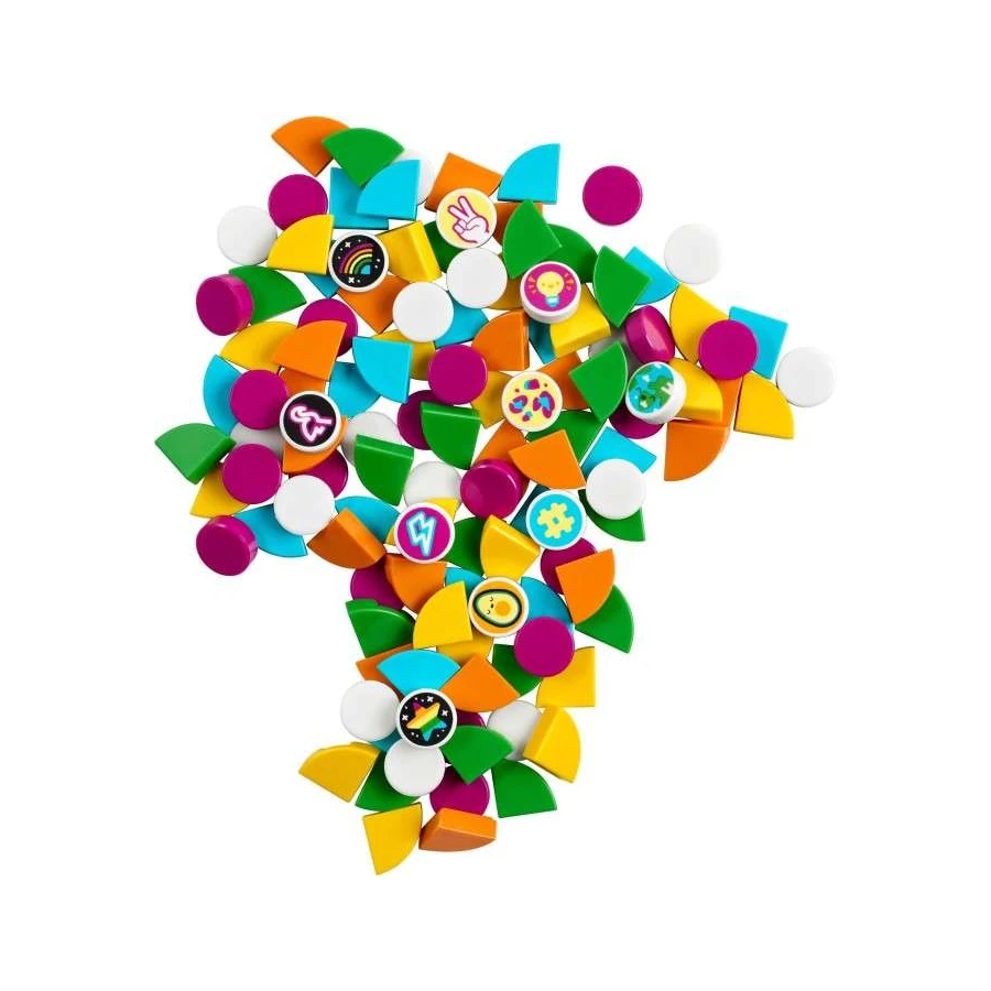 Navrhujte designy plné pestrých barev s tímto sáčkem exotických doplňků DOTS. Tvořte neomezené vzory a kombinace – k dispozici budete mít také 15 zdobítek, která svítí ve tmě, a 10 (celkem 16) unikátních sběratelských dílků. Obohaťte jimi své LEGO® DOTS doplňky do pokoje nebo náramky či jakoukoli jinou LEGO stavebnici, a ukažte tak všem svou kreativitu. Jaká zdobítka asi v sáčku naleznete? #dotyourworld