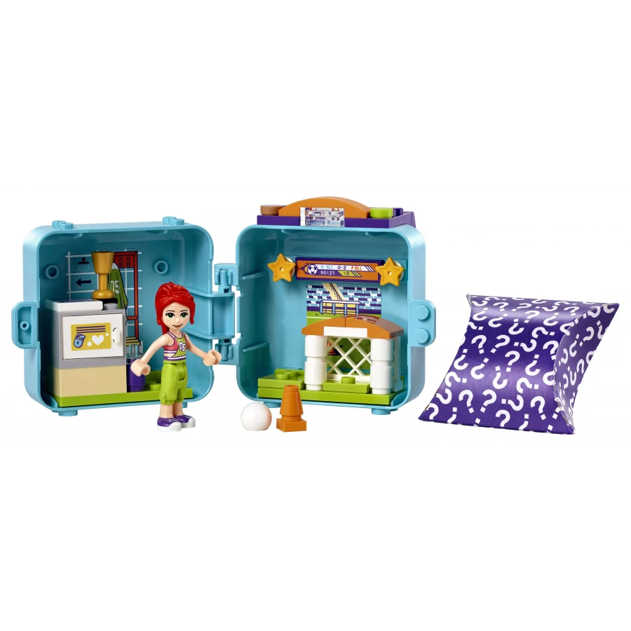 • Fotbalový boxík přináší spoustu kreativních prvků. Na děti čeká LEGO® Friends minipanenka Mia, figurka pejska v náhodné barvě, sestavitelná branka a šatna, a navíc výsledková tabule, míč a pohár.