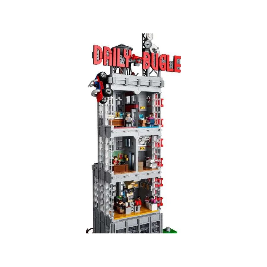 Replika redakce Daily Bugle z 3772 dílků, která měří přes 82 cm na výšku, poskytne parádní kulisy pro hvězdnou sestavu hrdinů a padouchů od Marvelu. Mnoho z nich je navíc naprostou novinkou! Budova samotná je plná autentických detailů, fascinujících funkcí a klasické komiksové akce – od newyorského taxíku před budovou až po byt šéfredaktora. Na fandy Marvelu čeká náročný, ale obohacující stavitelský projekt. Jednotlivá patra, střechu a fasády lze sundat, aby vám v obdivování této impozantní pocty studiu Marvel nic nebránilo.