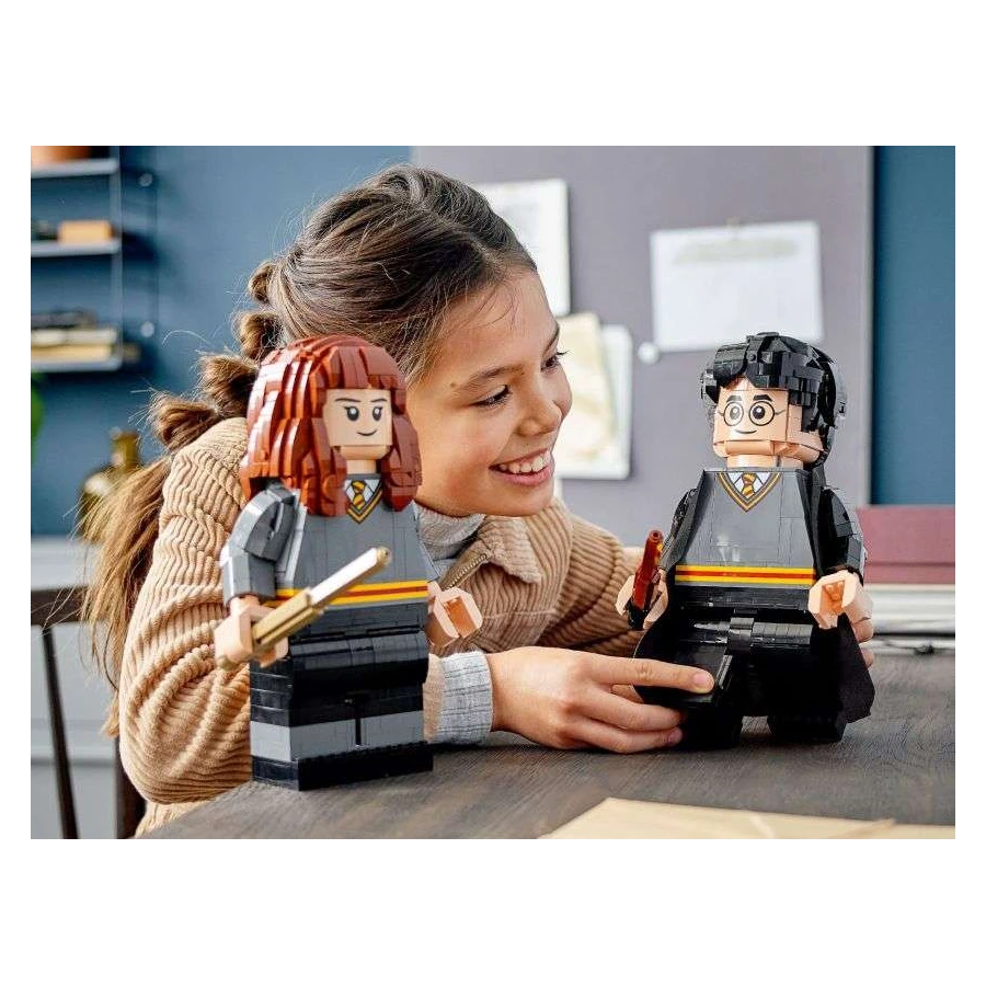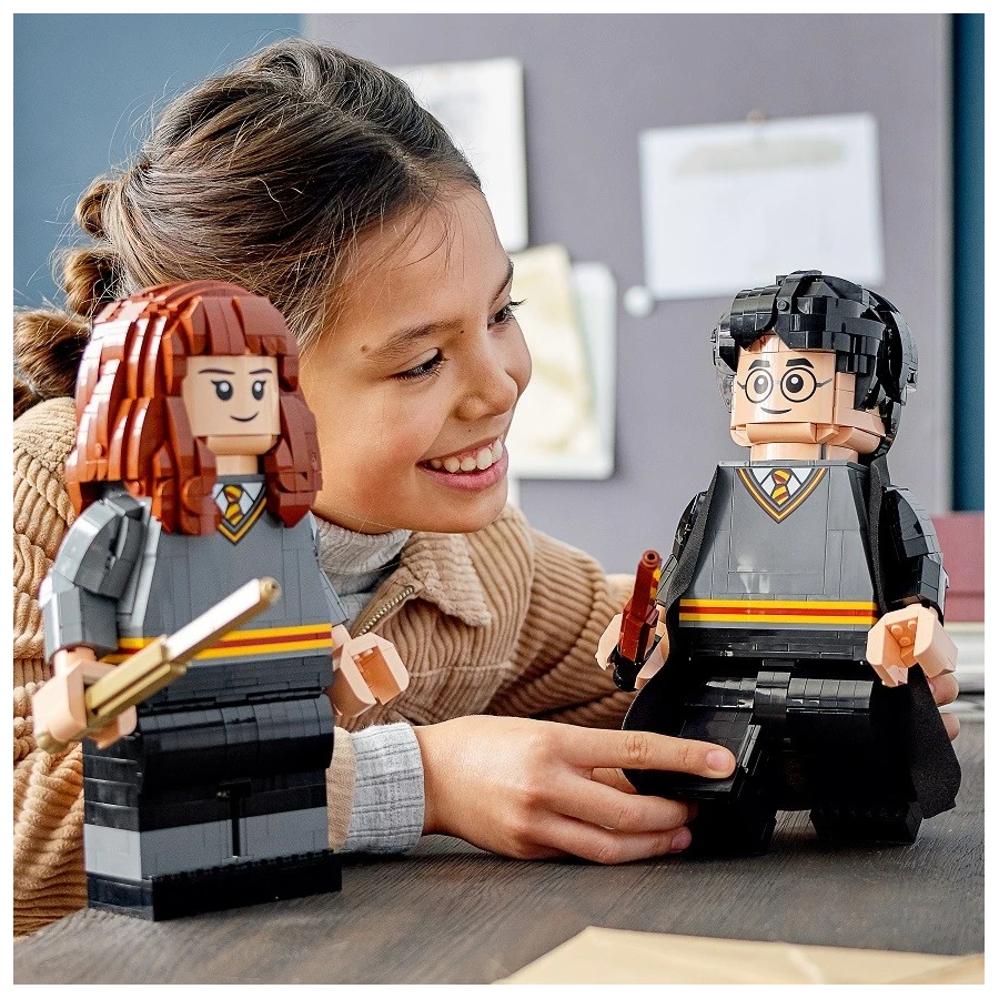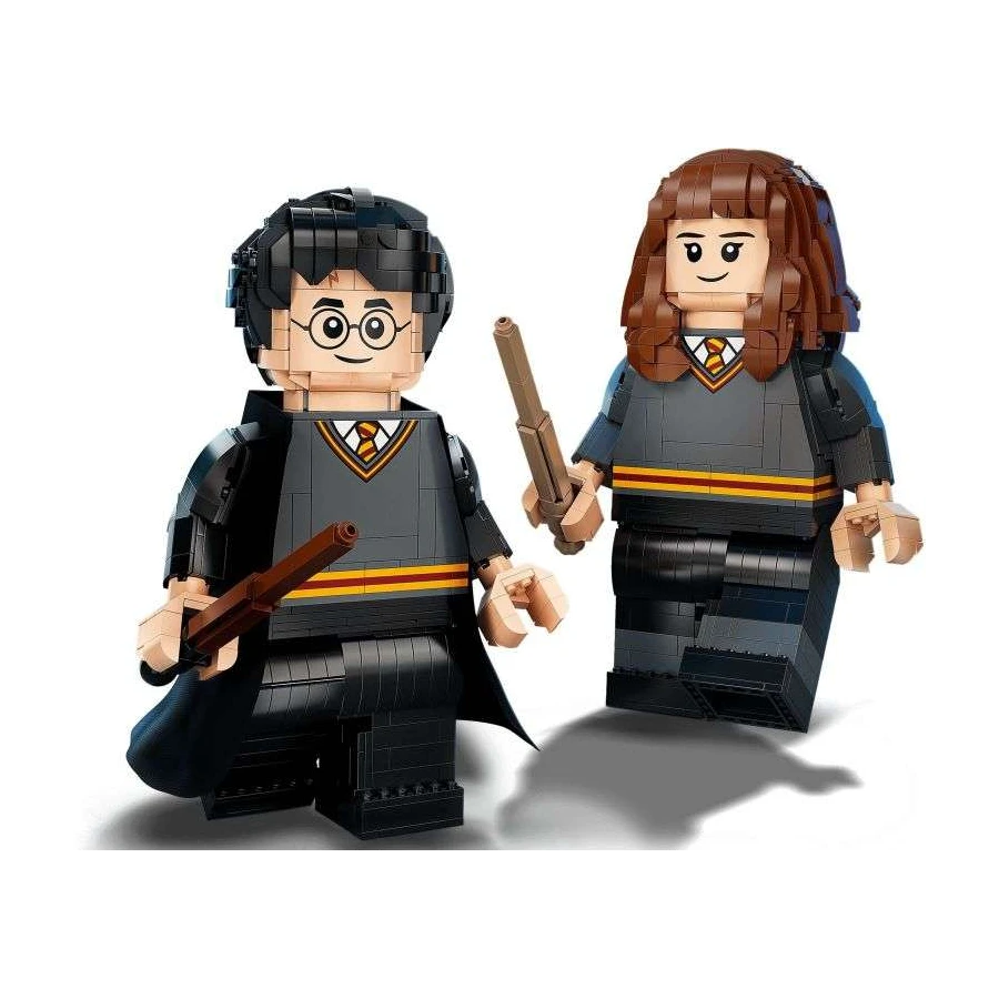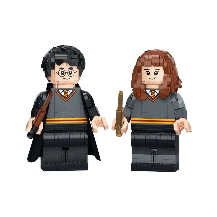 Děti si užijí velikou porci kouzelné zábavy s modely Harryho Pottera a Hermiony Grangerové z kostek. Obě figurky jsou 26 cm vysoké a lze s nimi pohybovat stejně jako s běžnými LEGO minifigurkami – hýbou rukama, nohama, trupem a figurka Harryho Pottera má otočnou hlavu. Harry je vybaven látkovou róbou, kterou lze sundat, a obě postavy mají hůlky z kostek. Ty inspirují děti k přehrávání spousty magických příběhů. Jakmile nebudou hrdinové středobodem napínavých dobrodružství, děti mohou 2 kamarády z Bradavic vystavit ve svém pokoji. Díky dvěma návodům na stavění si zábavu mohou užívat zároveň dva stavitelé.
