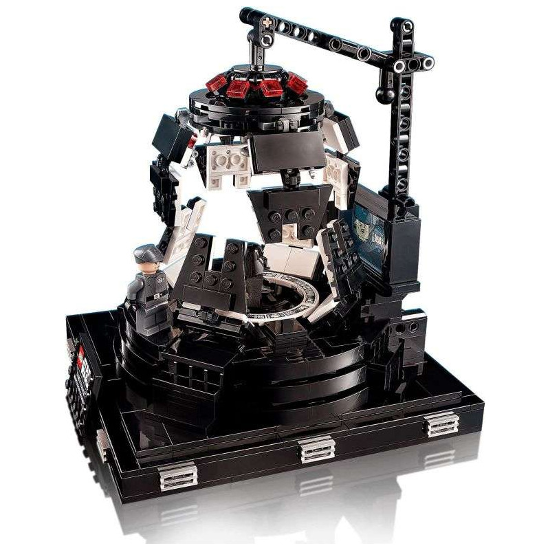 • Komoru lze otevírat a zavírat, přesně jako ve filmu, a je vybavena otočným křeslem pro Darth Vadera, velkou obrazovkou, řídicími panely a místem pro generála Veerse. Jedinečnost modelu dokresluje informační cedulka.