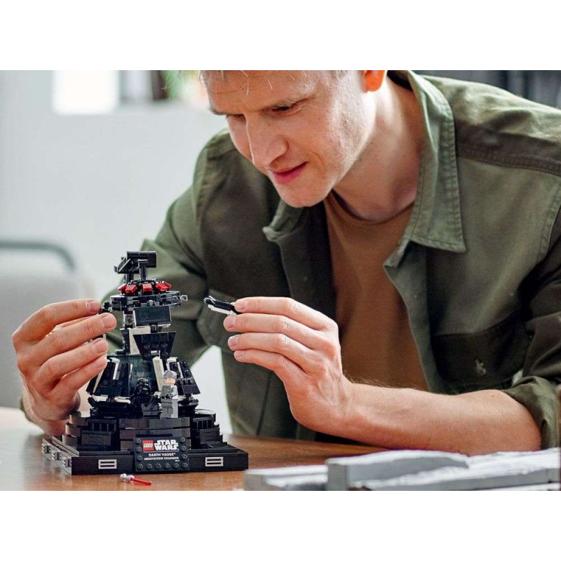 Každý občas potřebuje chvilku sám pro sebe – dokonce i Darth Vader. Dejte si pauzu a postavte si vůbec první LEGO® model meditační komory tohoto temného lorda. Pusťte se do stavění autentických detailů ikonické místnosti z filmu Star Wars: Epizoda V – Impérium vrací úder. Nesmí chybět funkce otevření/zavření, otočné křeslo pro Darth Vadera a místo pro generála Veerse. Cedulka s nápisem pak ještě lépe dotváří tento působivý výstavní kousek.
