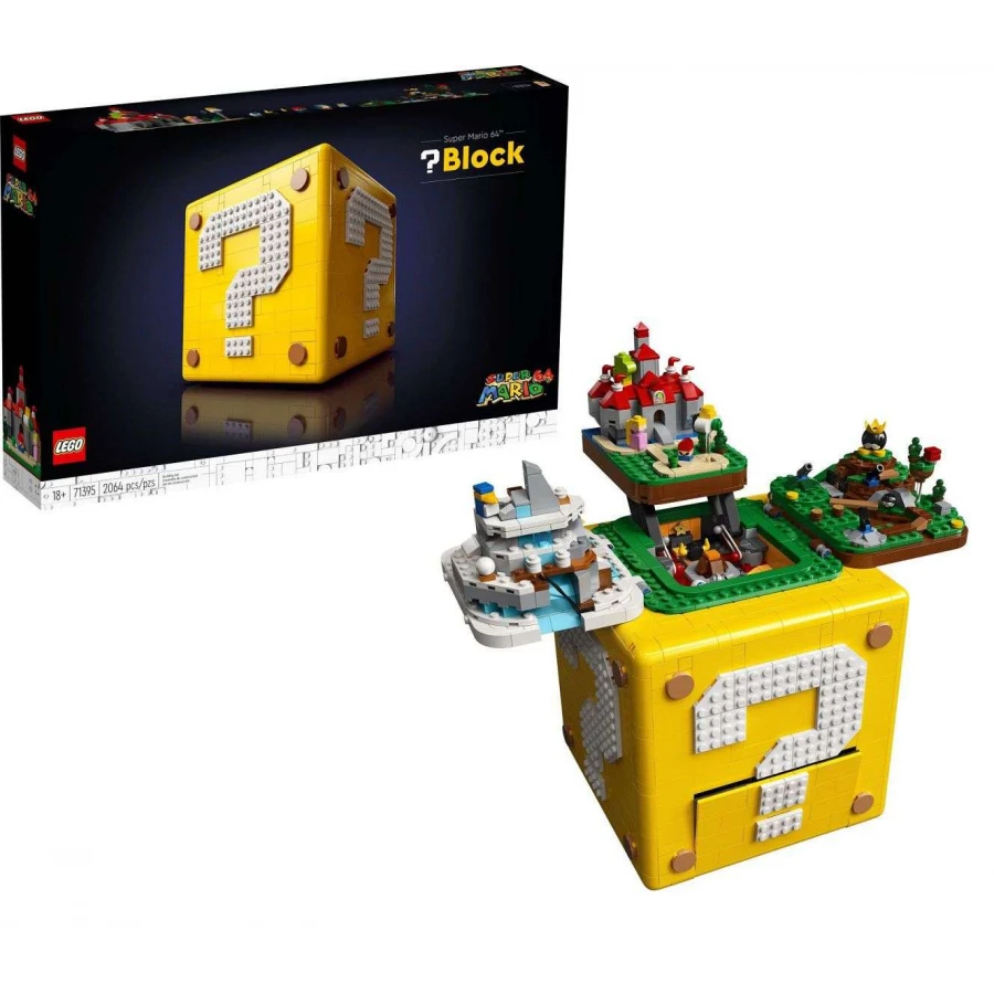 Postavte si LEGO® model akční kostky s otazníkem (71395) z videohry Super Mario 64™ a připomeňte si krásná dobrodružství. Po dvaceti pěti letech od uvedení videohry Super Mario 64 nyní máte příležitost postavit si akční kostku s otazníkem, ve které se ukrývají známé úrovně ze hry: Peach’s Castle, Bob-omb Battlefield, Cool, Cool Mountain a Lethal Lava Trouble. Nechybí ani 10 mikrofigurek kultovních postav, které můžete umístit do propracovaného modelu.