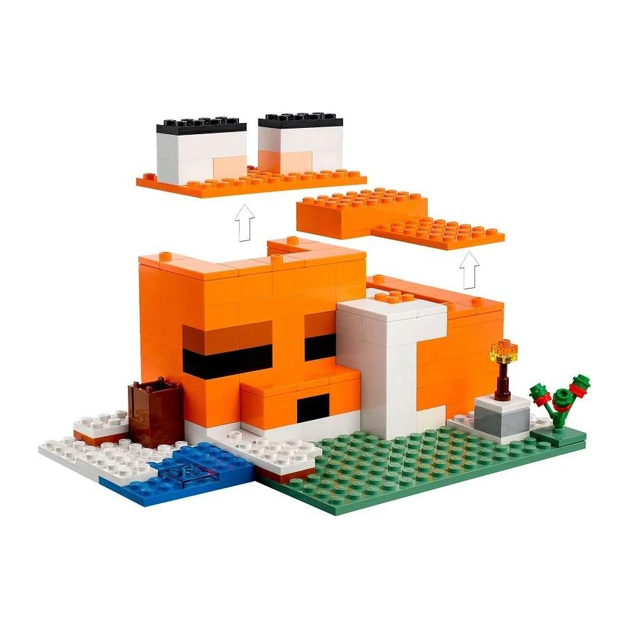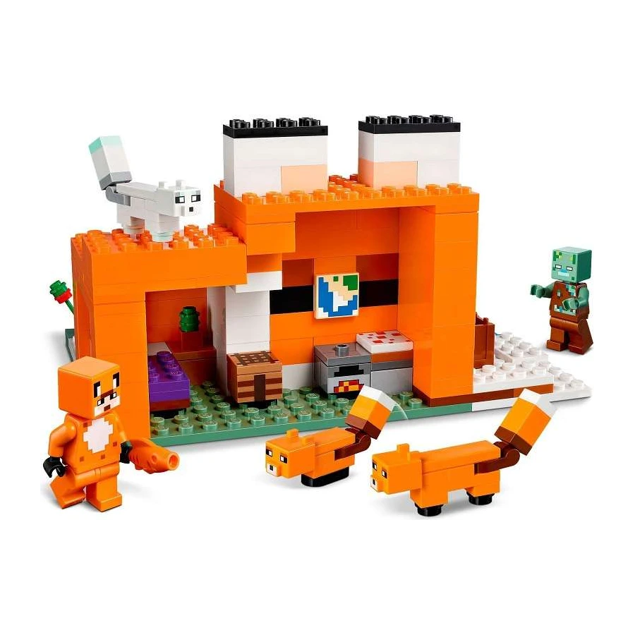 Využijte naplno svých dovedností ze světa Minecraft® a postavte obří liščí domek. Otevřená zadní strana a odnímatelná střecha usnadňují uspořádání nábytku a vybízejí k zábavnému hraní uvnitř. Venku najdete liščí mládě, dospělou lišku a polární lišku, které můžete nakrmit sladkými plody, než se schoulí do klubíčka ke spánku. Pak bude konečně čas na rybaření. Pozor! Blíží se zombie utopenec! Chopte se meče a braňte se.