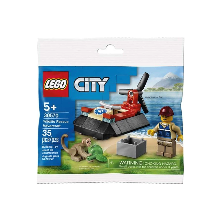 Sestav model vznášedla a se záchranářem se pokus z opuštěného ostrova zachránit mládě opičky.