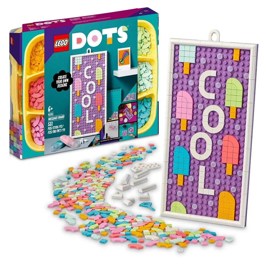 Zprostředkujte své poselství s touto mnohoříkající sadou od LEGO® DOTS! Vytvořte z podložek nástěnku a skládejte z dílků nejrůznější designy a vzkazy. Pro ještě větší porci zábavy sadu spojte se záplavou písmenek DOTS 41950 (prodává se samostatně). Nástěnku lze zavěsit vertikálně nebo horizontálně a případně ji lze rozdělit na 2 menší plochy. Neexistuje špatný způsob, jak k tvoření přistoupit, takže na designech nemáte co pokazit!