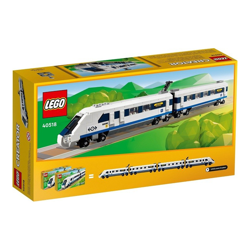 Milovníci vlaků si mohou přehrávat napínavé příběhy, zatímco budou řídit vysokorychlostní vlak (40518) městem i venkovem. Vlak se pyšní 2 vagony, přičemž jeden z nich má zkosený předek a je v něm kabina řidiče. Jedná se o skvělý dárek pro děti od 7 let, se kterým mohou obohatit výstavku nebo si přehrávat úžasná dobrodružství.