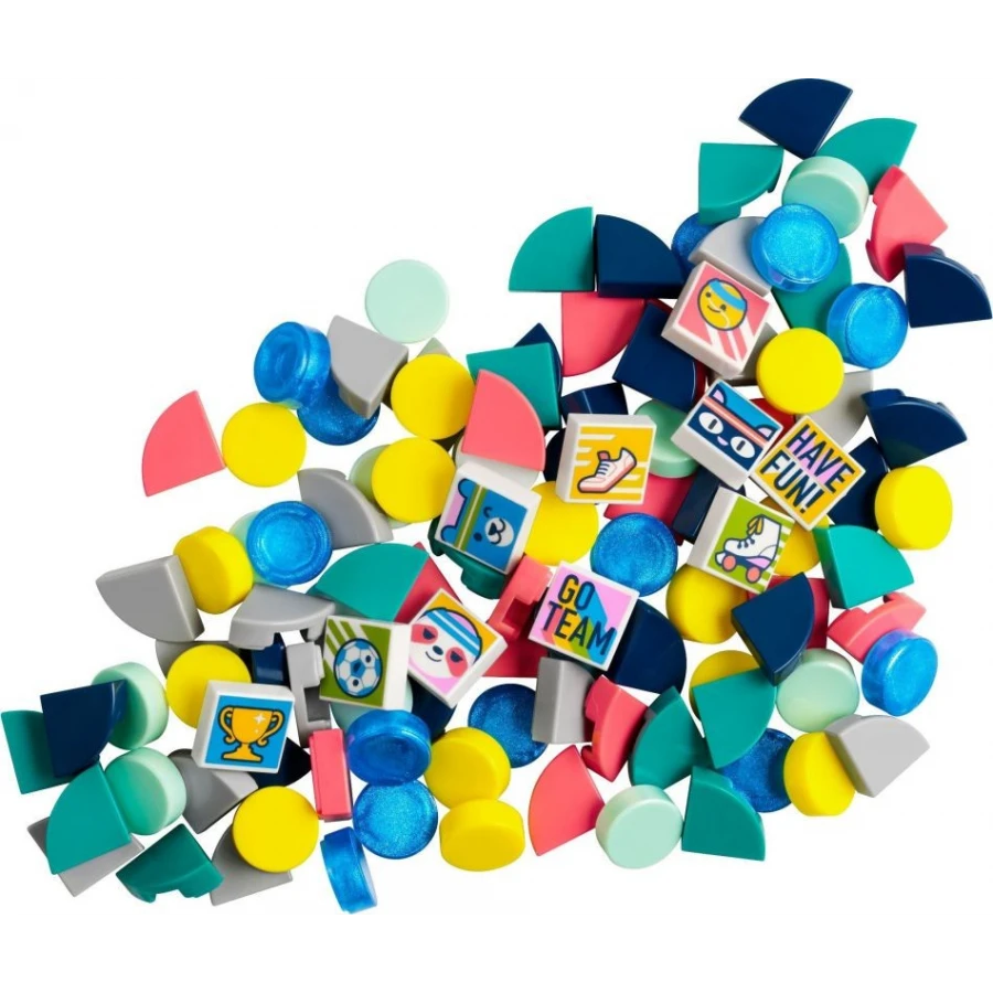 Dejte najevo svou lásku ke sportu s tímto zábavným sáčkem doplňků DOTS! Vymýšlejte neomezené kombinace s pomocí barevných a světlemodrých průsvitných dílků a 10 z celkem 16 možných zdobítek. Použijte je spolu s ostatními přizpůsobitelnými modely LEGO® DOTS a pusťte ke slovu své kreativní já. Ať už se rozhodnete pro jakýkoli způsob zdobení, nemůžete se splést! Které dílky jste v krabici našli vy? #ukazSVUJstyl
