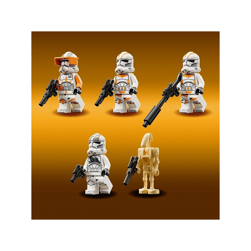 • 5 minifigurek LEGO® a 3 figurky LEGO droidů – Velitel Cody, klonovaný dělostřelec z 212. legie, 3 klonovaní vojáci z 212. legie a 3 bitevní droidi, a k tomu arzenál zbraní a sestavitelný robotí droid