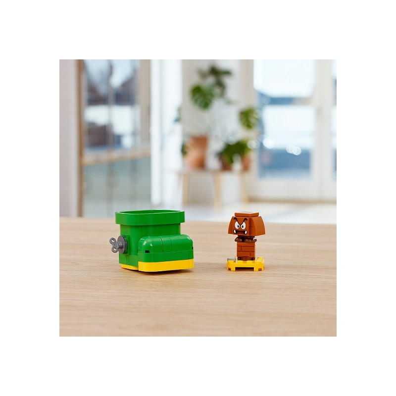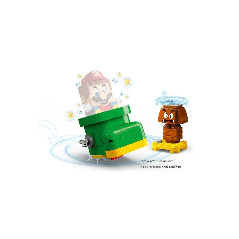 Připravte se vykročit vstříc zábavným dobrodružstvím ve světě LEGO® Super Mario™! Pomozte LEGO® Mariovi, LEGO® Luigimu nebo LEGO® Peach™ (figurky nejsou součástí balení) porazit Goombu a získat jeho velkou zelenou botu! Pak v botě poskakujte a předvádějte otočky ve vzduchu, díky kterým získáte fantastické odměny v podobě mincí! A pokud narazíte na nepřítele, vyskočte z boty a vypořádejte se s ním po svém – budete náležitě odměněni!