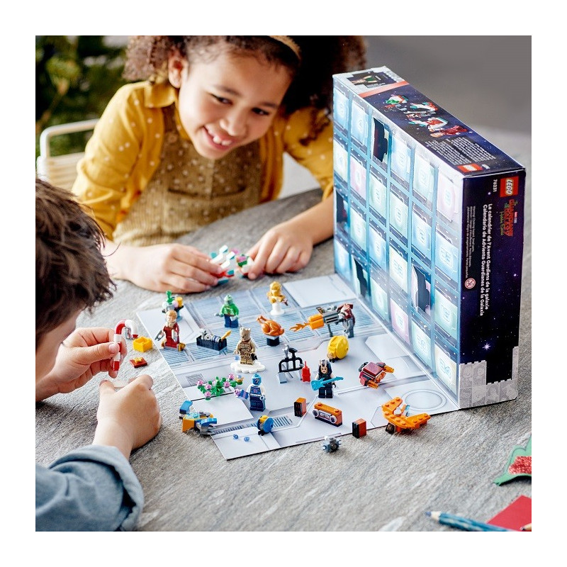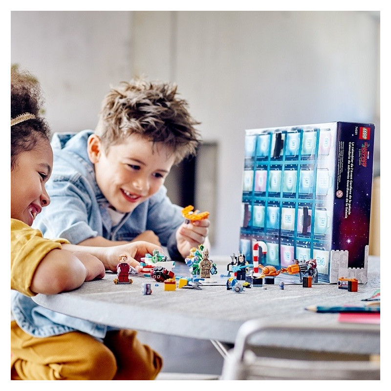 Zpestřete si čekání na Štědrý den adventním kalendářem Strážci Galaxie od LEGO® Marvel Studios! Každý den v prosinci otevřete jedno okénko, za kterým najdete překvapení. Můžete se těšit na 6 minifigurek, mini modely a různé doplňky. Jak se budou Vánoce blížit, budete si moct s dárečky přehrávat stále více oblíbených scén nebo vlastních dobrodružství ze světa komiksů od Marvelu.