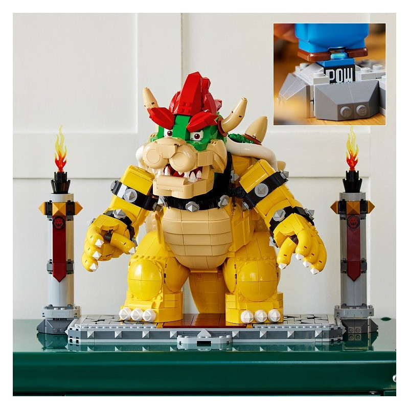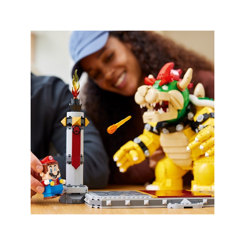 Stavějte, hrajte si a vystavte si krále všech Koop! Hýbejte hlavou a krkem Všemocného Bowsera a aktivujte vystřelovač ohnivých koulí. Vystavte si model na bitevní podložce, na které jsou dvě věže ke shození a ukrytá akční kostka POW. Nebo zkombinujte model Všemocného Bowsera s některým ze startovacích setů LEGO® Super Mario™ (prodávány samostatně) a dejte se do boje s LEGO® Mariem, LEGO® Luigim nebo LEGO® Peach™