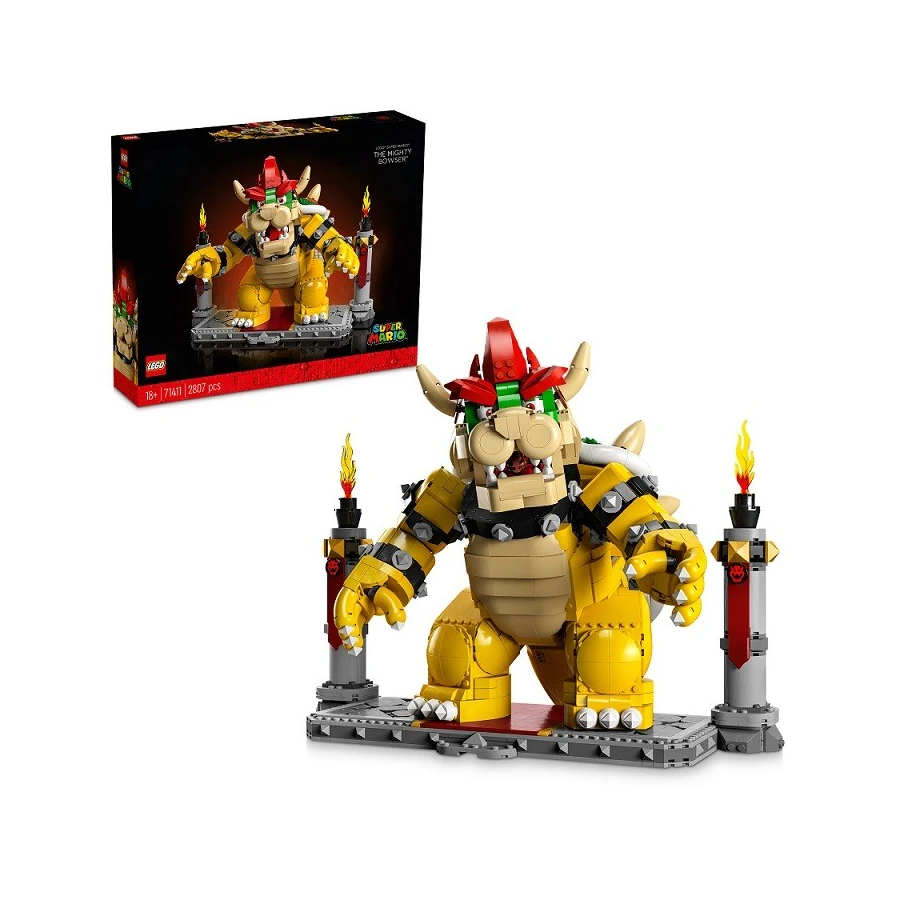 • Všemocný Bowser™ na výstavku – Tento model LEGO® Super Mario™ měří i s podstavcem na vystavení 32 cm na výšku, 41 cm na šířku a 28 cm do hloubky