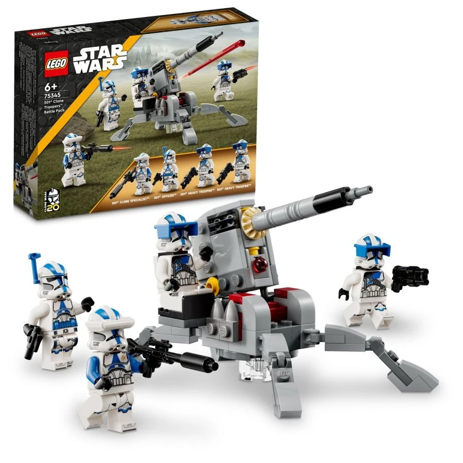• 4 minifigurky LEGO® Star Wars™ – Důstojník 501. legie s blasterovou pistolí, klonovaný specializovaný voják 501. legie s blasterovou puškou a 2 vojáci těžké pěchoty 501. legie s blastery