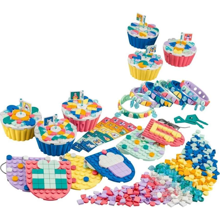 •Kreativní zdobení čeká – Překvapte milovníky ručních prací od 6 let zábavnou stavebnicí Úžasná party sada (41806) od LEGO® DOTS, která obsahuje 6 dortíků, 6 náramků, 6 vlaječek a spoustu dalších prvků