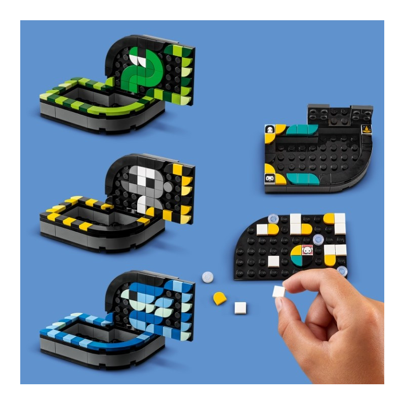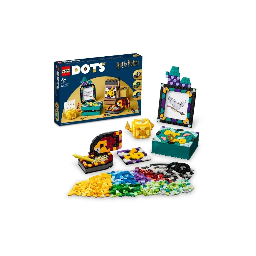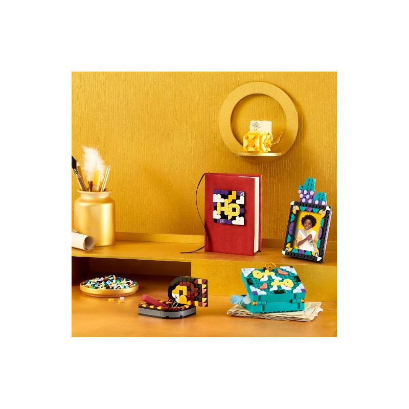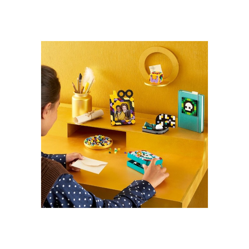 Darujte kreativním dětem a fanouškům Harryho Pottera od 8 let možnost ukázat svou příslušnost k bradavické koleji a uklidit stůl s pomocí sady doplňků na stůl LEGO® DOTS (41811). Sada je navržena k rychlému postavení a neomezeným možnostem tvoření a umožní dětem experimentovat. Kouzelná sada doplňků na stůl LEGO DOTS Nápaditá sada k vlastnoručnímu tvoření 4 různých doplňků do pokoje: držáčku na poznámky v podobě Zlatonky, fotorámečku s ozdobami, misky ve tvaru šály a uzamykatelné krabičky na poklady, a navíc nalepovací záplata 8x8 a spousta zdobítek, včetně 10 náhodně vybraných dílků s obrázky z 16 možných variant. Nechybí ani přiložený inspirativní letáček, který dětem pomůže nastartovat kreativní zábavu, a navíc návody k sestavení 4 předmětů k ozdobení. Pro děti, které milují design a Harryho Pottera Sady DOTS seznámí děti se zábavným světem hraní s kostkami LEGO, zatímco si budou zdobit doplňky dle vlastních kouzelných nápadů. Umožněte dětem dát průchod jejich vášni pro umění a design a pomozte jim uklidit si na stole s touto parádní sadou, která je ideální pro všechny školáky.