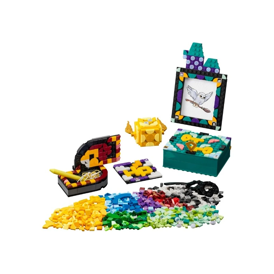 Vyrazte zpátky do Bradavic a připravte dětem pracovní stůl před návratem do školy s pomocí této sady LEGO® DOTS. Prozkoumejte všechny dílky, postavte si fotorámeček (a vyberte si své oblíbené ozdoby), misku ve tvaru šály, držáček na poznámky v podobě Zlatonky a krabičku na poklady. Nechybí ani nalepovací záplata. Roztřiďte barvy a dejte se do zdobení. K dispozici budete mít také 10 náhodných dílků s obrázky, díky kterým budou designy na motivy Harryho Pottera ještě lepší!