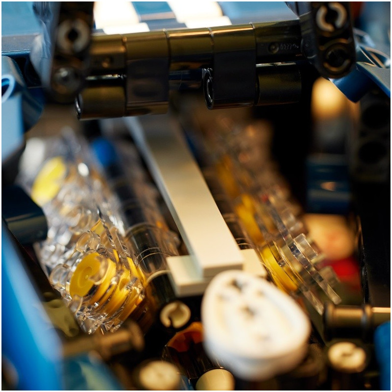 Zařaďte nejvyšší rychlost. Seznamte se s vozem 2022 Ford GT – superautem, které nenechá nikoho chladným. Nyní si tuto ikonu můžete přivést domů v podobě repliky LEGO® Technic, a navíc si vychutnáte obohacující stavitelský zážitek. Obdivujte všechny autentické prvky, například pohon zadních kol s diferenciálem, funkční šestiválcový motor, nezávislé tlumiče všech kol, přední řízení, otevírací dveře a otevírací kapotu.