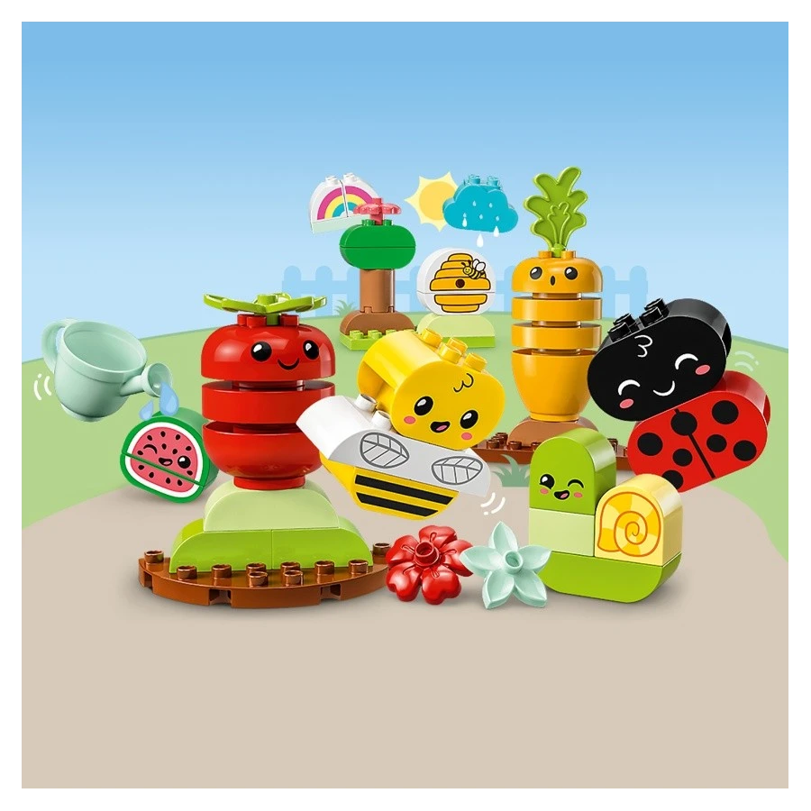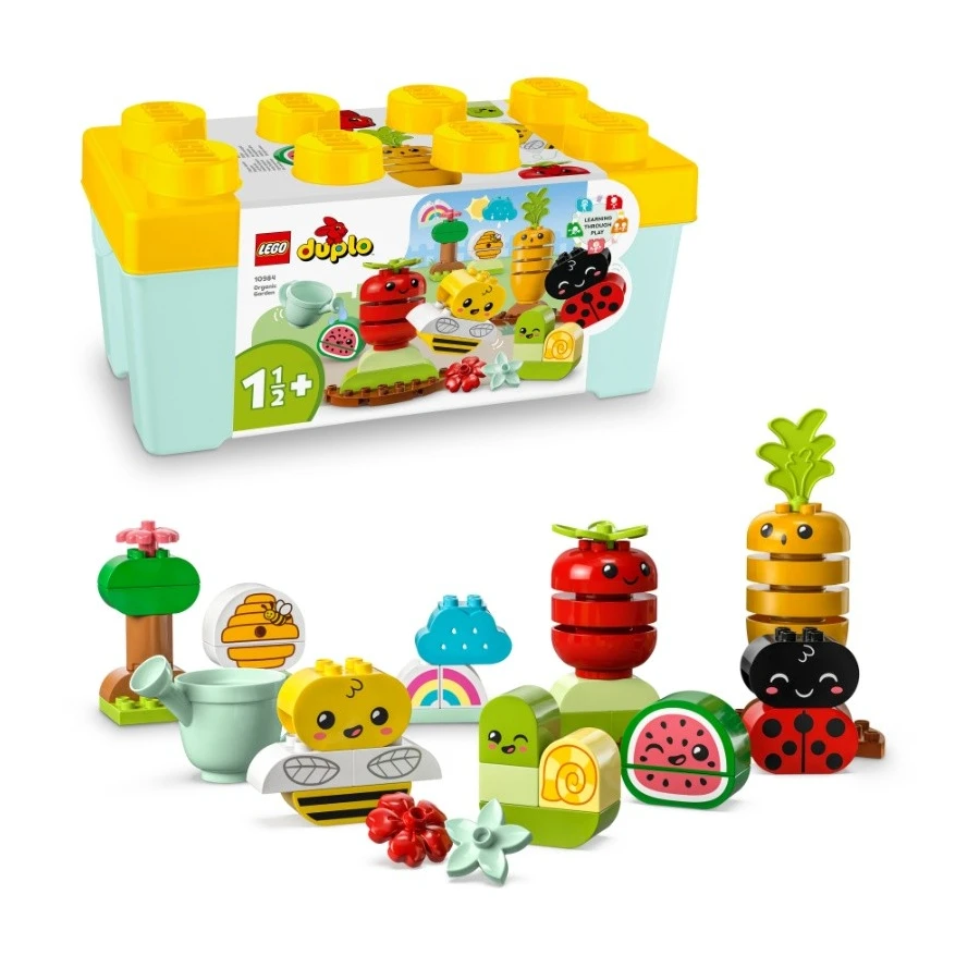 • Vzdělávací hračky pro batolata – Se stavebnicí LEGO® DUPLO® Moje první bio zahrádka (10984) se děti od 18 měsíců budou učit o přírodě, hmyzu a pěstování rostlin v zahradě