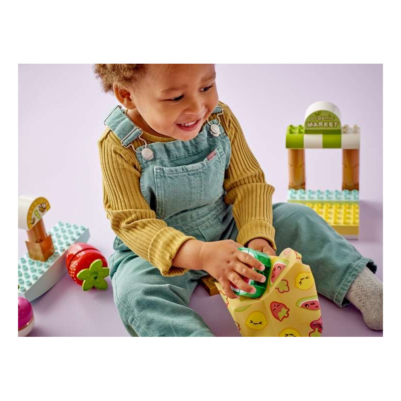 • Farmářský trh pro malé děti – Zahrajte si s malými staviteli staršími 18 měsíců na nakupování se stavebnicí LEGO® DUPLO® Můj první bio farmářský trh (10983)