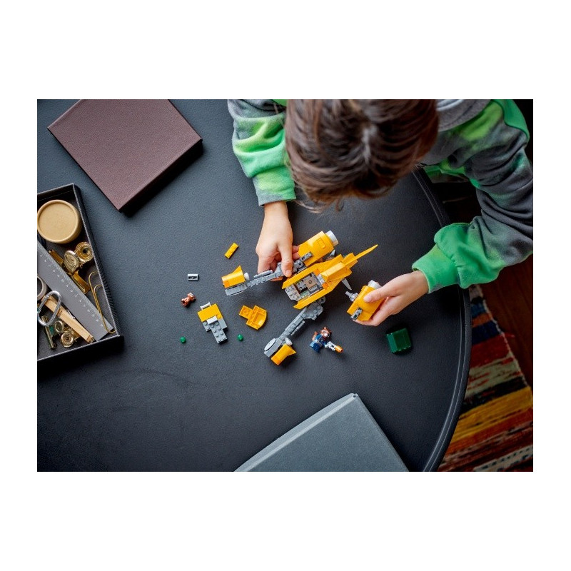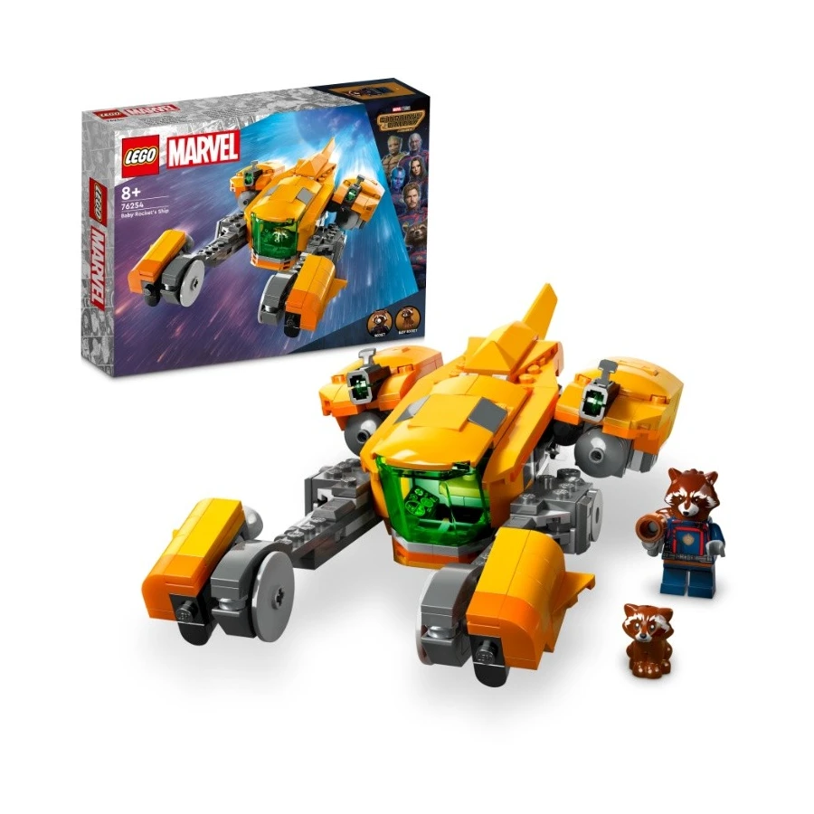 Superhrdinská Vesmírná loď malého Rocketa od LEGO® Marvel (76254) z filmu Strážci Galaxie: Volume 3 dětem od 8 let umožní stát se součástí nekonečně nápaditých dobrodružství. Rocket ve vesmíru! Tato stavebnice představuje vesmírnou loď, pomocí níž malý Rocket utekl svým stvořitelům. Součástí je otevírací kokpit, zatahovací podvozek a 2 vystřelovače. Kromě figurky malého Rocketa je součástí sady také minifigurka dospělého Rocketa, která povzbuzuje k dalším akčním dobrodružstvím Strážců Galaxie. Stáhněte si aplikaci s návody LEGO Builder, která dětem umožní vychutnat si zcela novou porci zábavy při stavění díky funkcím přibližování a otáčení modelů ve 3D, ukládání stavebnic a sledování postupu.