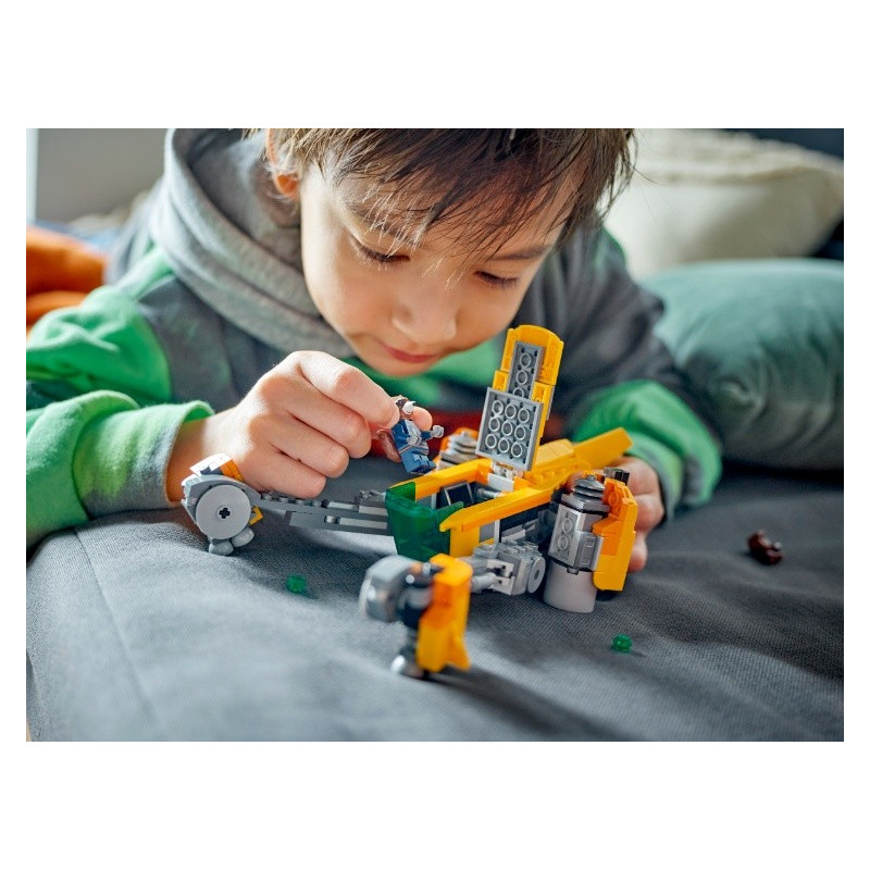 • Legendární postavy – Kromě figurky malého Rocketa je součástí sady také minifigurka dospělého Rocketa, která povzbuzuje k dalším akčním dobrodružstvím Strážců Galaxie