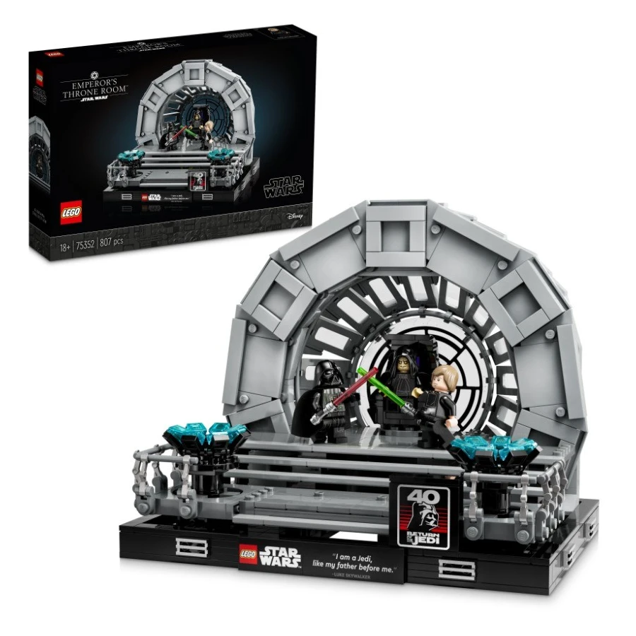 • Probuďte v sobě tvořivou Sílu – Zachyťte souboj Darth Vadera a Luka Skywalkera se světelnými meči z filmu Star Wars: Návrat Jediho pomocí stavebnice Císařův trůnní sál – diorama (75352)