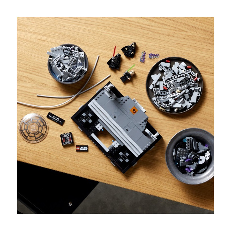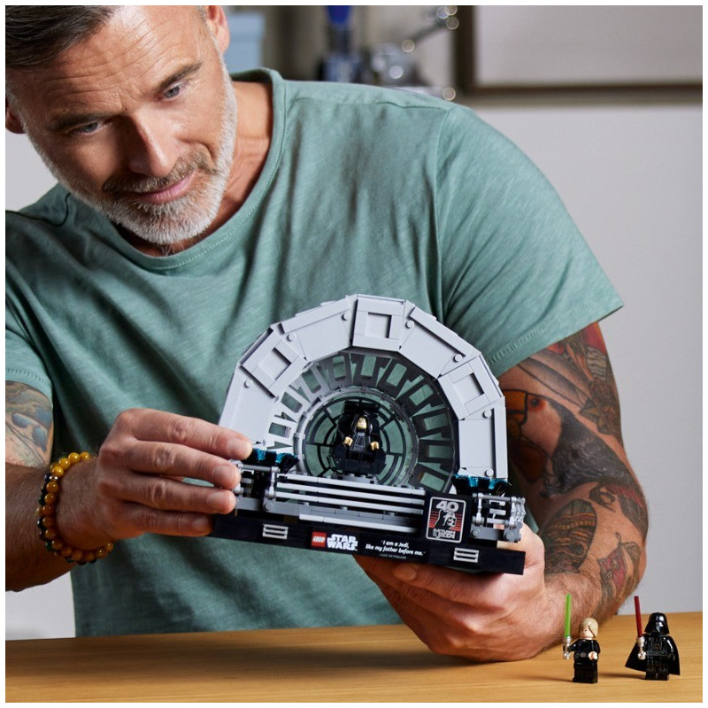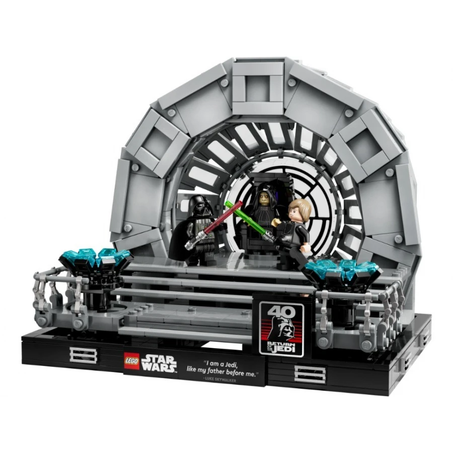 Použijte Sílu a znovu vytvořte vyhrocený souboj světelných mečů z filmu Star Wars: Návrat Jediho. Postavte císařův trůnní sál s oknem Hvězdy smrti a otáčivým trůnem. Světelné meče Darth Vadera a Luka Skywalkera a Sithské blesky císaře Palpatina scéně dodávají na dramatičnosti. Velkolepou atmosféru podtrhuje plaketka ke 40. výročí filmu Star Wars: Návrat Jediho.