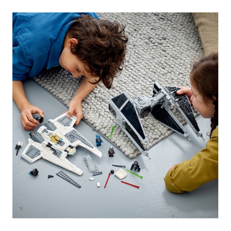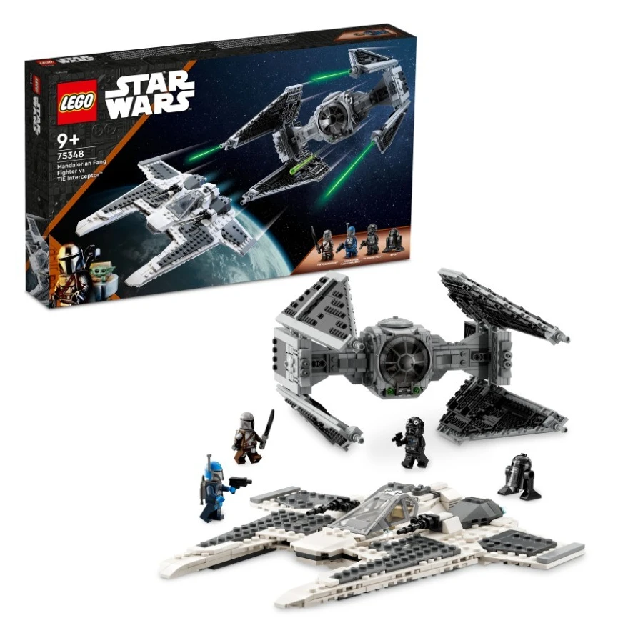 • Mandalorianská stíhačka třídy Fang proti TIE Interceptoru (75348) – Inspirujte děti k přehrávání příběhů ze 3. řady seriálu Star Wars: The Mandalorian nebo k tomu, aby si vymyslely vlastní velkolepá dobrodružství s modely stíhaček
