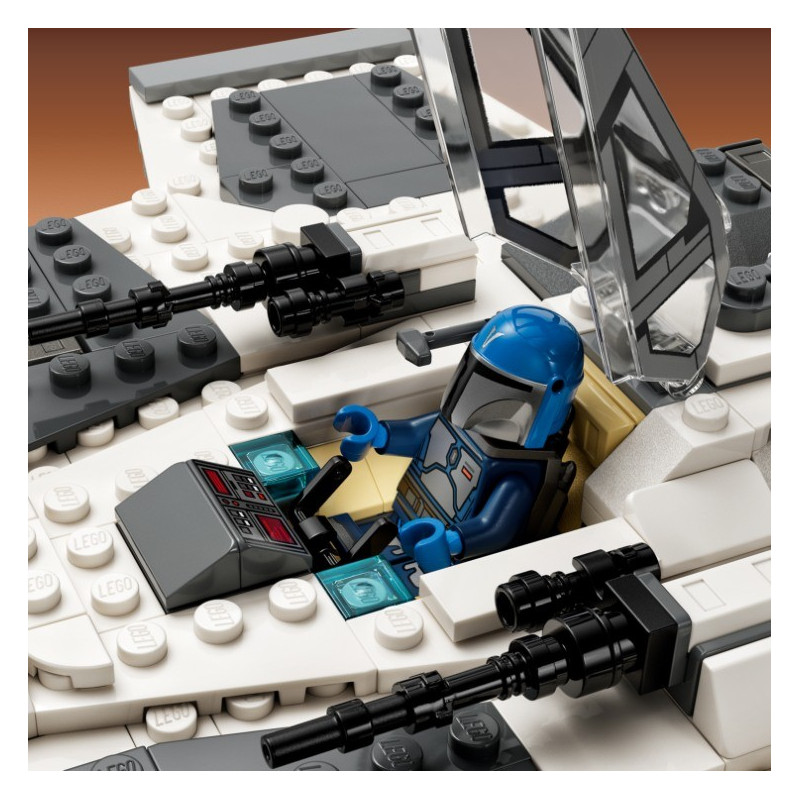 • Mandalorianská stíhačka třídy Fang – Má otevíratelný kokpit pro minifigurku, úložný prostor pro zbraně a 2 pružinové vystřelovače