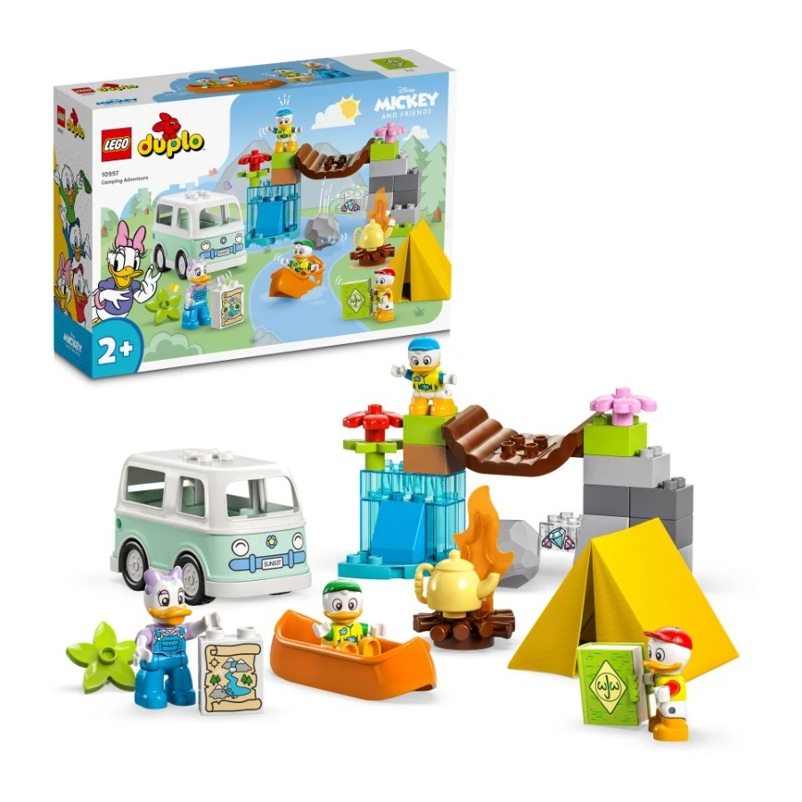 Zpestřete dětem hraní se stavebnicí z řady LEGO® DUPLO® ǀ Disney Mickey a kamarádi (10997) Dobrodružné kempování, která jim přinese hodiny učení hrou. Stavebnice je plná kreativních činností a děti od 2 let se s ní přidají ke kačence Daisy od Disney a jejím synovcům na akčním kempování a společně procvičí vytrvalost a týmovou práci. Sestavitelná stavebnice rozvíjí představivost Malé děti se v obytné dodávce vydají na dobrodružství v přírodě s Daisy, Kulíkem, Dulíkem a Bubíkem. Najdou mapu vedoucí k pokladu a sjedou řeku na kánoi a bezpečně proplují pod vratkým mostem, na kterém nebezpečně vyhlíží balvan připravený se sesunout do vody. Objeví spolu poklad za sestavitelným vodopádem, rozdělají táborák a pak se uvelebí ve stanu. Zdokonalování dovedností na celý život Malí stavitelé si s touto vzdělávací hračkou procvičí jemné motorické schopnosti. Hraní rodinných scén jim pomůže rozvíjet empatii, sebevyjádření a spolupráci. Rodiče se mohou přidat k akčnímu hraní a sdílet s nimi tyto vývojové milníky.