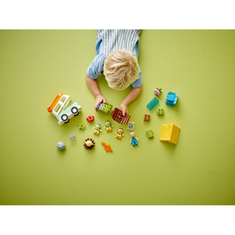 • Známé tváře – Součástí je kánoe, pojízdná obytná dodávka, textilní stan a 4 figurky LEGO® DUPLO®: Daisy od Disney a její synovci Kulík, Dulík a Bubík