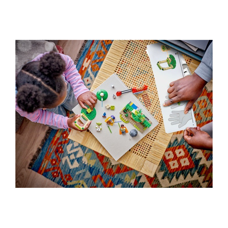 Rytířem Jedi stanete se, jako v seriálu Star Wars: Young Jedi Adventures! Dopravte se spídrem k chrámu Jediů Tenoo s Lys Solay a Kai Brightstarem, abyste se mohli učit od mistra Yody. Odpočiňte si na palandě, vypijte modré mléko a pusťte se do tréninku. Cvičte s výcvikovým droidem, otestujte svou rovnováhu a použijte Sílu k tomu, aby se kámen před chrámem vznášel!