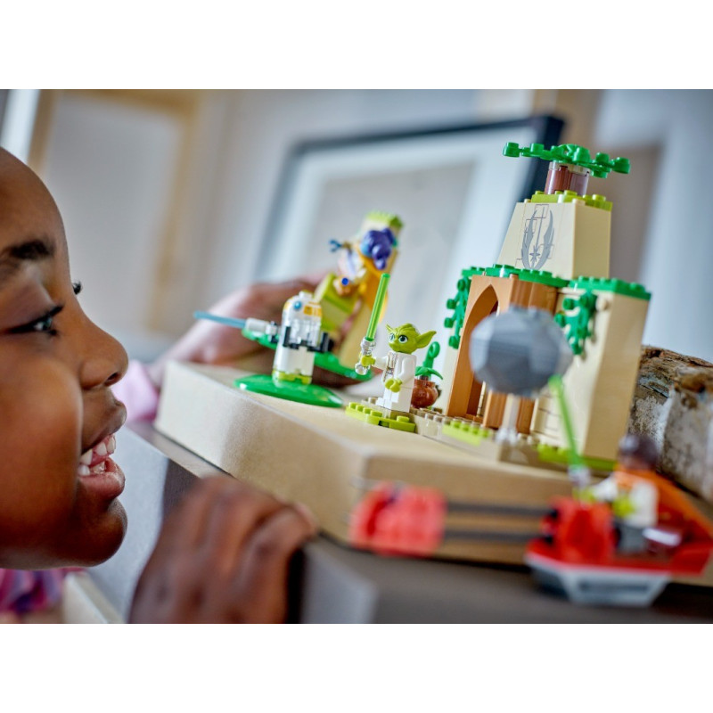 • 3 minifigurky LEGO® Star Wars™ – Lys Solay a Kai Brightstar se středně velkýma nohama a mistr Yoda s malýma nohama. Každá postava má vlastní světelný meč pro jediský výcvik