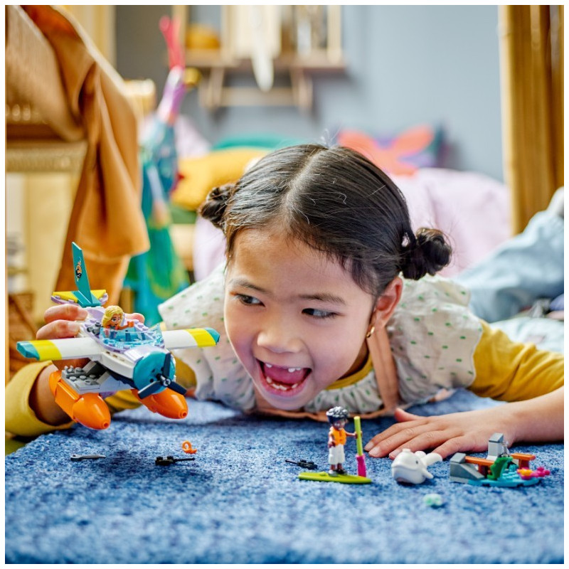 • Dárek pro děti s láskou ke zvířatům – Tato stavebnice LEGO® Friends je skvělým dárkem pro děti od 6 let, které by si chtěly postavit záchranářský hydroplán a vymýšlet si vlastní dobrodružství