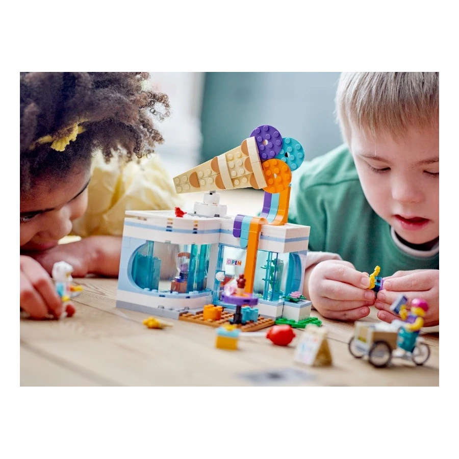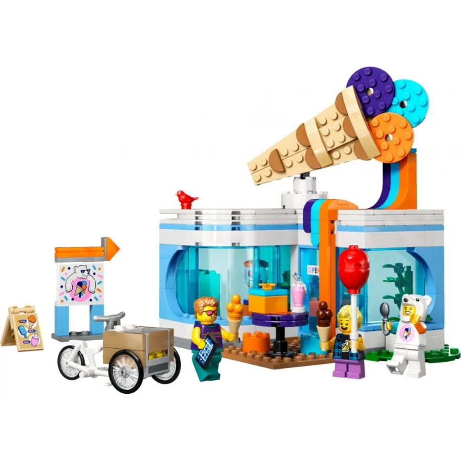 Nasedněte na nákladní kolo a vydejte se do Obchodu se zmrzlinou od LEGO® City. Pomozte prodavači podávat spokojeným zákazníkům lahodnou zmrzlinu a mléčné koktejly. Tahle zmrzlinárna je vážně úžasná! Je to ideální místo pro narozeninovou oslavu a nechybí tu krásný zmrzlinový pult, mixér, lednice a venkovní posezení, kde si kamarádi a rodiny mohou odpočinout, zatímco si prohlížejí jídelní lístek.